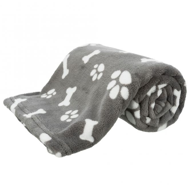 Deze pluche deken van Trixie is gemaakt van polyester en heeft een rustige grijze kleur. Het voelt zacht aan en is bedoeld als ligdeken voor honden, bijvoorbeeld in een mand of bench of als extra laag in een favoriete rustplek. Het formaat is compact, geschikt voor kleinere plekken in huis of als extra deken voor op de bank. De deken is makkelijk te verplaatsen en voelt soepel aan onder de poten van de hond.