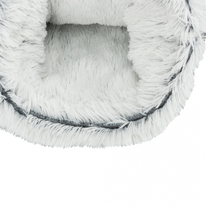 Door het lange pluche voelt de binnenkant extra zacht aan en kan het dier zich prettig intrekken. Polyester is licht van structuur en houdt de vulling op zijn plaats, zodat het ligoppervlak gelijkmatig blijft. Het materiaal nodigt uit tot knuffelen en houdt geen extreem veel ruimte in beslag. Zo blijft de plek overzichtelijk en uitnodigend voor het dier.