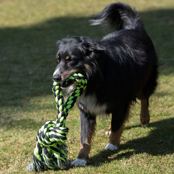 Niet alle honden hebben hetzelfde speelritme en dat is prima met dit touw. Sommige honden willen het meteen trekken, andere honden sjouwen er liever mee rond. Daarom is het verstandig om samen te kijken hoe jouw hond het liefst speelt. Zo stem je het gebruik af op de energie en het karakter van je hond.