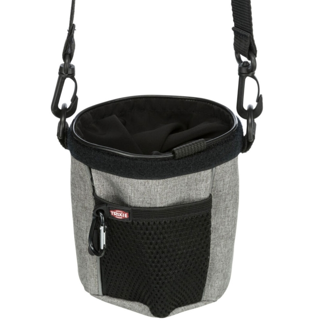 De tas is geschikt om tijdens korte trainingen of wandelingen snel bij traktaties te kunnen. Met één hand pak je iets uit de opening, waardoor belonen vlotter gaat en je de aandacht van je hond kunt vasthouden. Er is ook een karabijnhaak om bijvoorbeeld een fluitje of clicker aan te bevestigen.