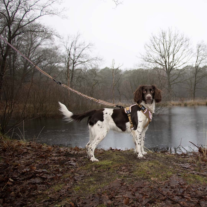 Doordat je de lijn snel kunt inkorten, houd je meer controle in drukke situaties. Een kortere lijn geeft minder ruimte voor onverwachte bewegingen in druk verkeer of wanneer er veel prikkels zijn. Op die manier kun je rustiger omgaan met onverwachte momenten tijdens de wandeling.