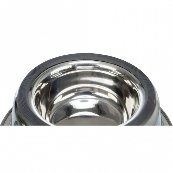 De bak is gemaakt van roestvrij staal, wat stevig en duurzaam is en geen geur vasthoudt. Er zit een rubberen ring onderaan die zorgt dat de bak minder snel verschuift tijdens het eten. Dit rubber moet goed blijven zitten en kun je af en toe controleren om te zorgen dat hij zijn anti-slipfunctie behoudt.