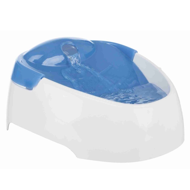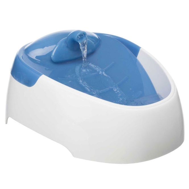 Het doorlopende water kan ook geur- en smaakverschillen minder merkbaar maken, waardoor dieren eerder geneigd kunnen zijn te drinken. De rustige werking en de zachte geluiden van stromend water zijn meestal geen harde storende factor in huis. Omdat de fontein compact en licht van formaat is, past hij in veel woonruimtes zonder veel plek in te nemen. De witte en blauwe uitvoering valt relatief onopvallend weg tussen andere spullen.