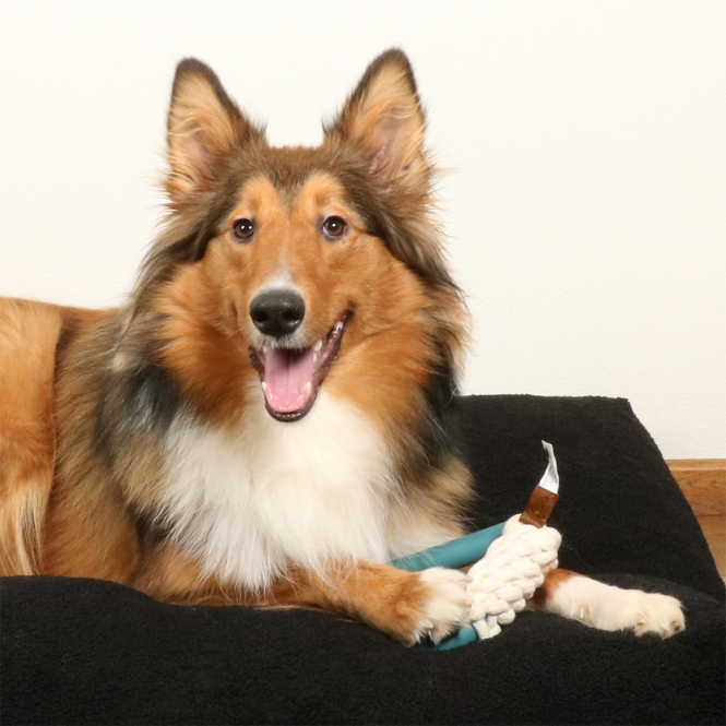 Het speeltje werkt goed bij apporteren en bij touwtrekken. Het katoenen koord nodigt uit tot trekken, terwijl het rubber weerstand biedt. Zulke spellen zorgen voor beweging en aandacht van je hond.