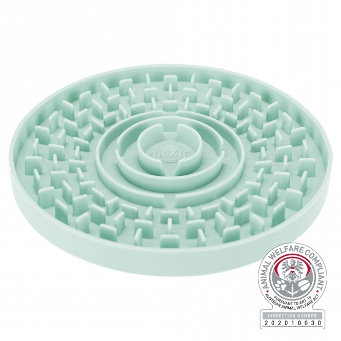 De Trixie Junior Schleckplatte is een likplaatje voor puppy’s en jonge honden uit de Junior-serie. Het is bedoeld om op een rustige manier bezig te zijn met eten en likken, bijvoorbeeld met smeerbare snacks of natvoer. De plaat is gemaakt van kunststof en heeft een mintkleurige uitvoering.