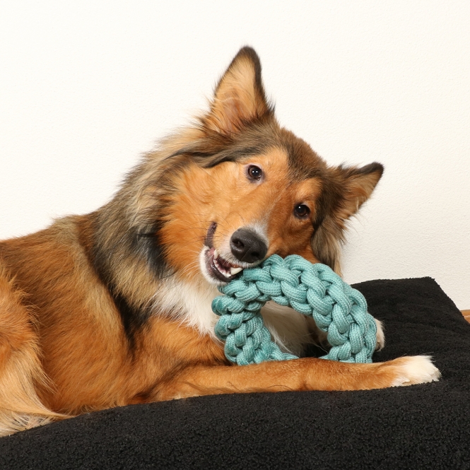 Honden die graag knagen vinden in de knoopring een duidelijk object om op te werken en te ontdekken. Het speel- en kauwgedrag kan helpen om energie kwijt te raken op een rustige manier. Let er altijd op dat het kauwen gecontroleerd plaatsvindt en dat beschadigde delen worden verwijderd.