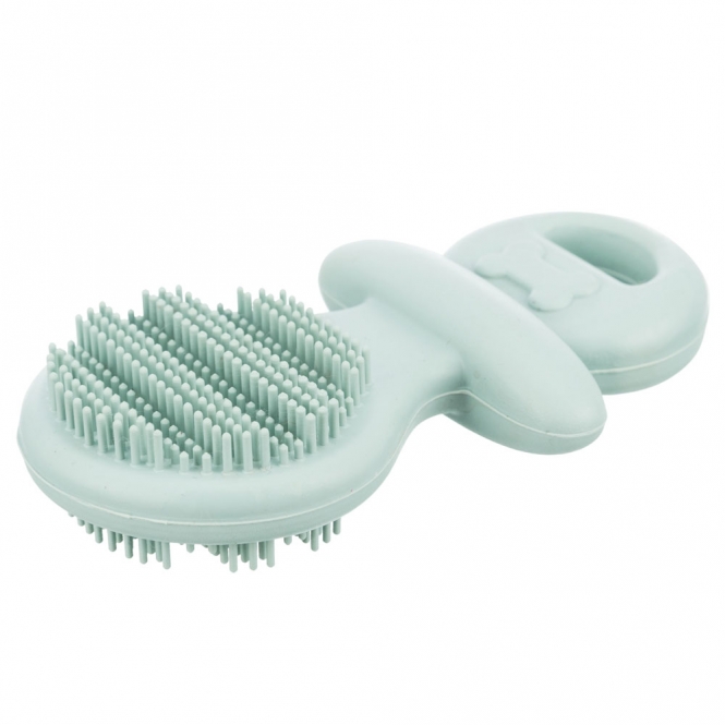 De rubberen textuur kan tijdens kauwen het tandvlees licht masseren, wat pups vaak prettig vinden. Het materiaal is bedoeld voor rustig kauwen en vrij zacht spel. Let op de staat van het rubber bij regelmatig gebruik.