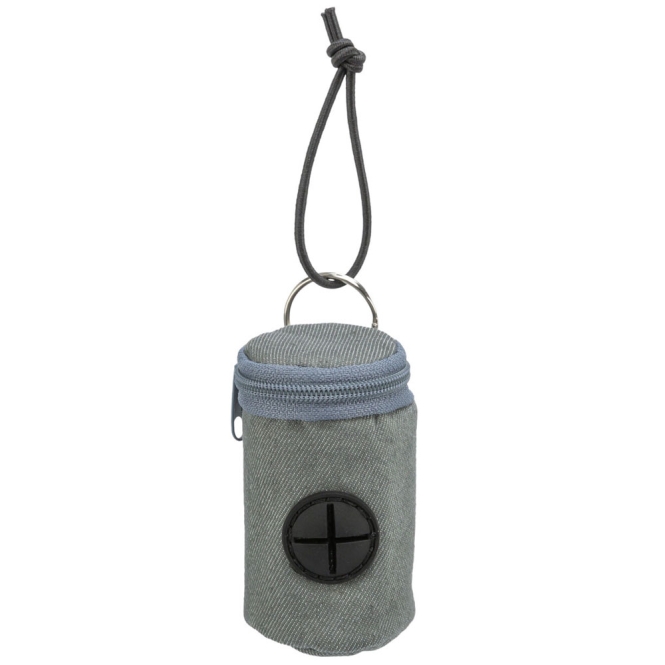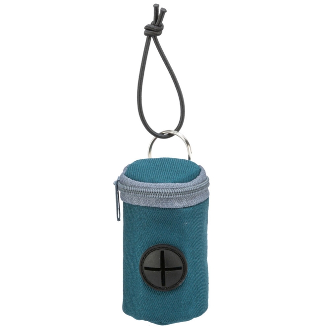 Dit is een zakjesdispenser van Trixie met twee rollen zakjes erbij. De dispenser heeft een elastische lus waarmee je hem bijvoorbeeld aan een rollijn kunt vastmaken. Hij is gemaakt van nylon en polyester en wordt geleverd in verschillende kleuren, waarbij je de kleur niet kunt kiezen omdat die afhangt van de voorraad.