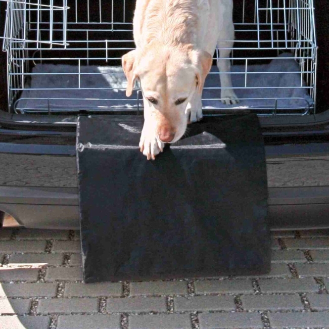 U kunt het doek eenvoudig over de bumper hangen voordat de hond uitstapt of instapt. Het materiaal geeft een egale ondergrond waar de hond op kan stappen. Zo wordt de overgang tussen auto en buiten minder abrupt voor sommige dieren.