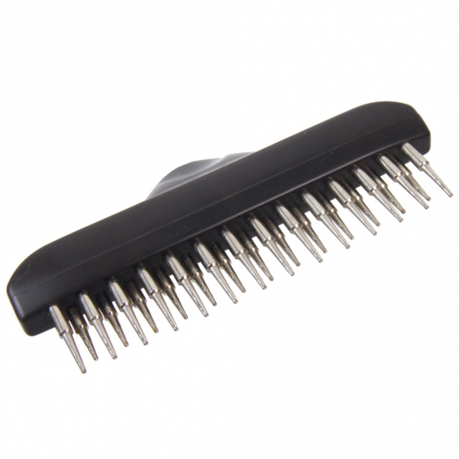 De striegel is bedoeld om zowel de bovenvacht als de ondervacht voorzichtig door te werken. Je gebruikt hem bij dieren met langere of stuggere vachten, waarbij er soms meer aandacht nodig is om het haar netjes te houden. Het doel is om het haar te kammen en los vuil en losse haren te helpen verwijderen zonder te trekken. Daarmee kun je regelmatig onderhoud uitvoeren zonder zware hulpmiddelen.