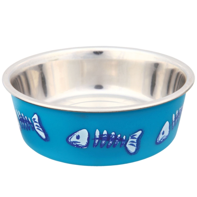 Kattenvoerbak RVS met Kunststofmantel met Vismotief – Trixie