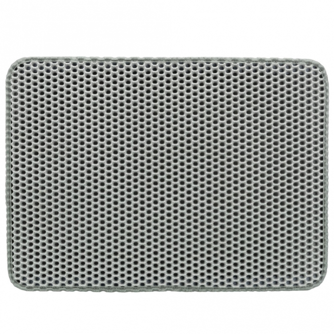 Deze zeefmat voor de kattenbak is een eenvoudige en rustige oplossing om losse kattenbakvulling op te vangen. De mat is gemaakt van stevig EVA en heeft twee lagen die met klittenband aan elkaar zitten. Door het compacte formaat past de mat voor de meeste kattenbakken en de kleur is neutraal grijs. De mat is makkelijk schoon te houden en voelt stevig aan onder de pootjes van de kat.
