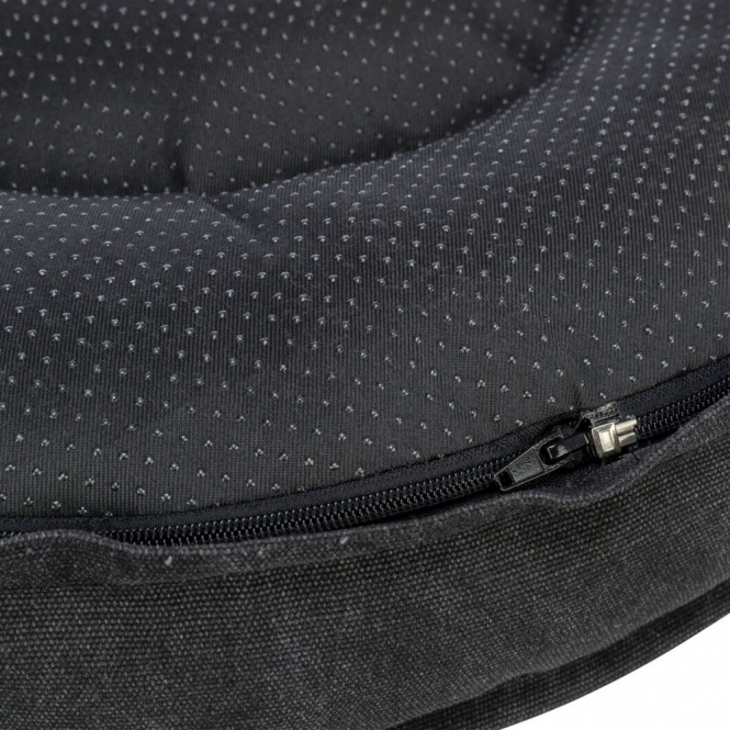 Er is een draaggreep aangebracht waarmee je het bed makkelijk kunt verplaatsen zonder het te moeten tillen aan de rand, dat scheelt tijd en rommel. De hoes is afneembaar zodat je alleen de buitenkant kunt verzorgen als dat nodig is. De combinatie van canvas-achtige buitenstof en zachte pluche binnenin zorgt voor verschillende voelbare lagen waar zowel dier als eigenaar voordeel van hebben.