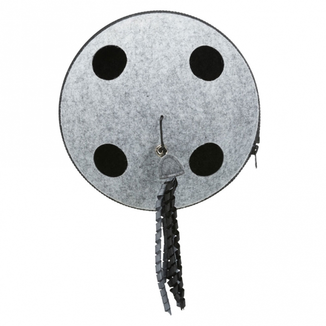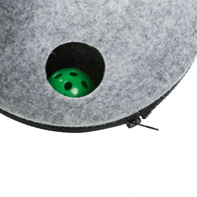Dit is de Trixie Wiggle & Fumble Katzenspiel, een speelbal voor katten gemaakt van vilt (polyester). In de bal zit een rammelbal die geluid maakt wanneer de bal beweegt. Je kunt de bal ook vullen met andere speeltjes, zodat er afwisseling mogelijk is. Het geheel heeft een handzaam, middelgroot formaat waarmee katten kunnen duwen en rollen.