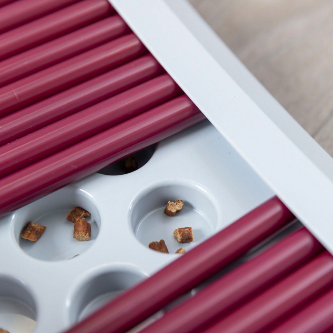 Dit is een spelbord voor katten van het merk Trixie, uitgevoerd als een bordspel met stokjes en kuiltjes. Het bord is gemaakt van kunststof en heeft onderzijde met rubberen voetjes zodat het minder snel verschuift. Er wordt een korte trainingsaanleiding meegeleverd en het bord heeft een handzaam formaat.