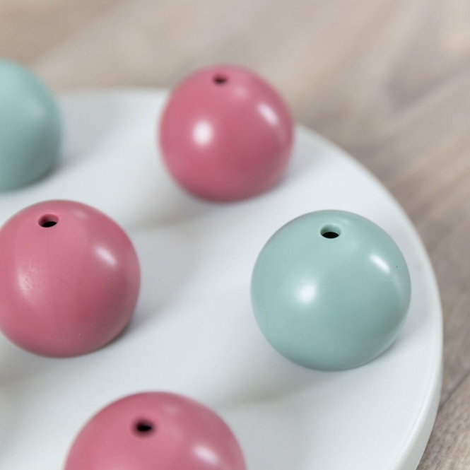 Onder de afdekkugels verbergt u kleine beloningen die uw kat met wat pootwerk tevoorschijn kan halen. Het spel laat de kat onderzoekend en voorzichtig omgaan met de onderdelen, doordat beloning en inspanning direct gekoppeld zijn. Door te wisselen wat u onder de dekseltjes stopt, blijft het voor uw kat afwisselend en interessant.