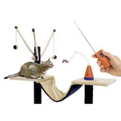 Het speelgoed werkt met een afstandsbediening waarmee je de hengel in beweging zet door op een knop te drukken. De beweging is snel en wendbaar zodat de speeltjes voor de kat uitnodigend heen en weer gaan. Door de afstandsbediening kun je het spel van een afstand sturen en de bewegingen aanpassen aan het gedrag van je kat.