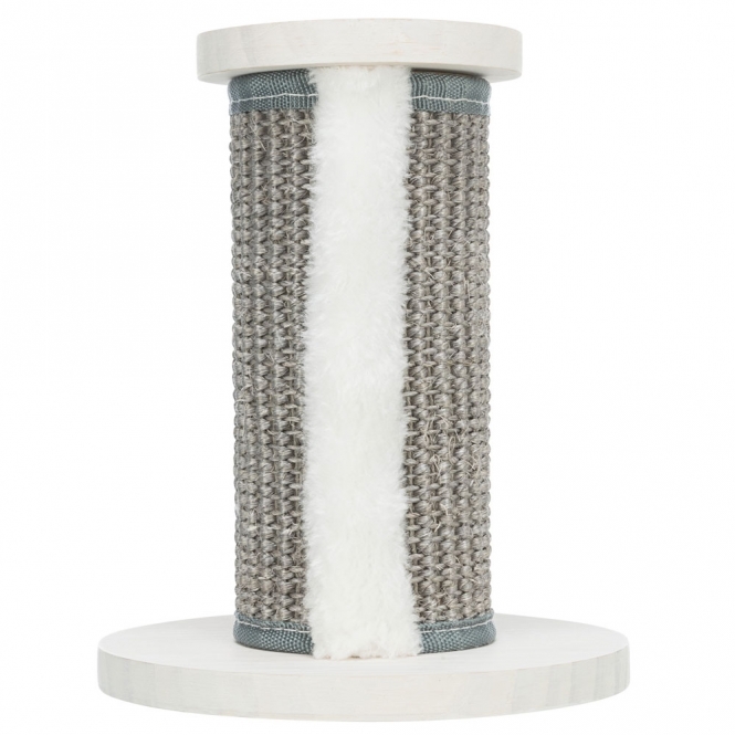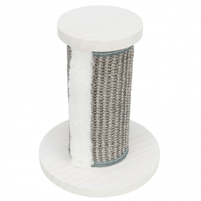Het plateau combineert hout met sisal, een materiaal dat vaak wordt gebruikt bij krab- en klimaccessoires voor katten. Hout geeft een natuurlijke, rustige uitstraling en sisal biedt een ruwer oppervlak om aan te krabben. Samen vormen deze materialen een eenvoudige en functionele combinatie voor binnengebruik. De afwerking in wit gelazuurd en grijs houdt het geheel ingetogen.