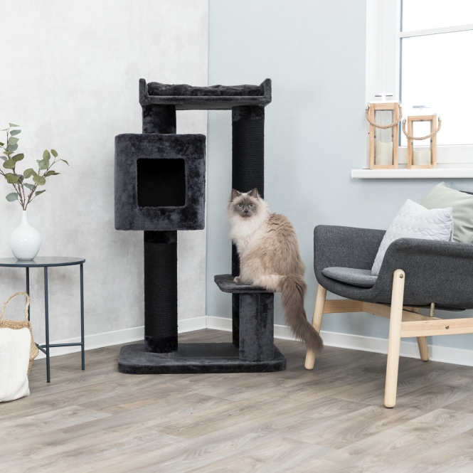Deze Trixie krabpaal XXL IZAN is ontworpen met het oog op grotere katten en heeft een rustige, antracietkleurige bekleding. De paal is bekleed met pluche en de stammen zijn omwonden met dik natursisal en pluche. Er is een holletje met zachte fleece en een ligplateau met een omkeerbaar kussen dat met de hand gewassen kan worden.