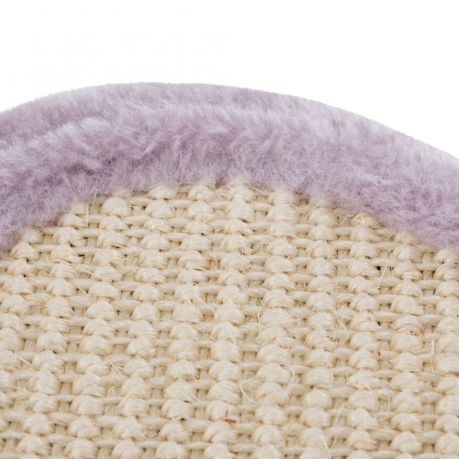 De krabpaal heeft een omhulsel van sisal op de stam en is verder voorzien van zachte pluche van polyester. Het contrast tussen ruw sisal en zacht pluche geeft je kat afwisselende texturen om aan te werken en op te liggen. De stofkeuze zorgt voor een aangenaam gevoel voor de kat zonder harde of scherpe delen. Kleuren zijn neutraal en licht lila, wat een rustige uitstraling geeft.