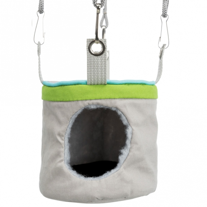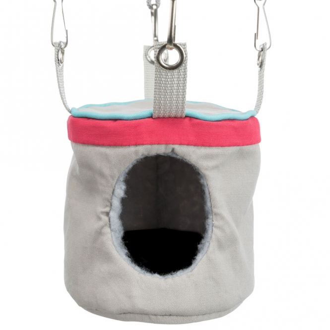 De hol biedt een verborgen plek waar een klein dier zich kan terugtrekken of even uitrusten. Omdat het product bedoeld is om te hangen, past het goed in kooien waar extra vloeroppervlak schaars is. Voor knaagdieren die graag in kleine, omsloten ruimtes liggen kan zo’n hol een rustige plek zijn om zich terug te trekken.