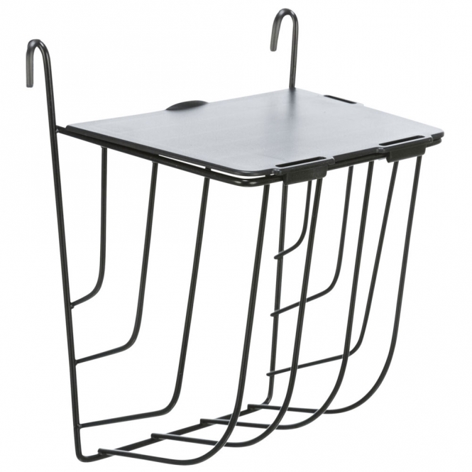 Een compacte, op te hangen heuraufe van Trixie met deksel in een rustige zwarte kleur. De ruit is gemaakt van gepoedercoat metaal en heeft een kunststof deksel. Door het deksel is het risico op verwondingen kleiner dan bij open voerbakken. Volgens de productinformatie is het apparaat tierschutzkonform volgens § 18 (AT).