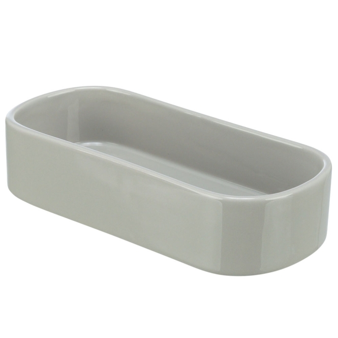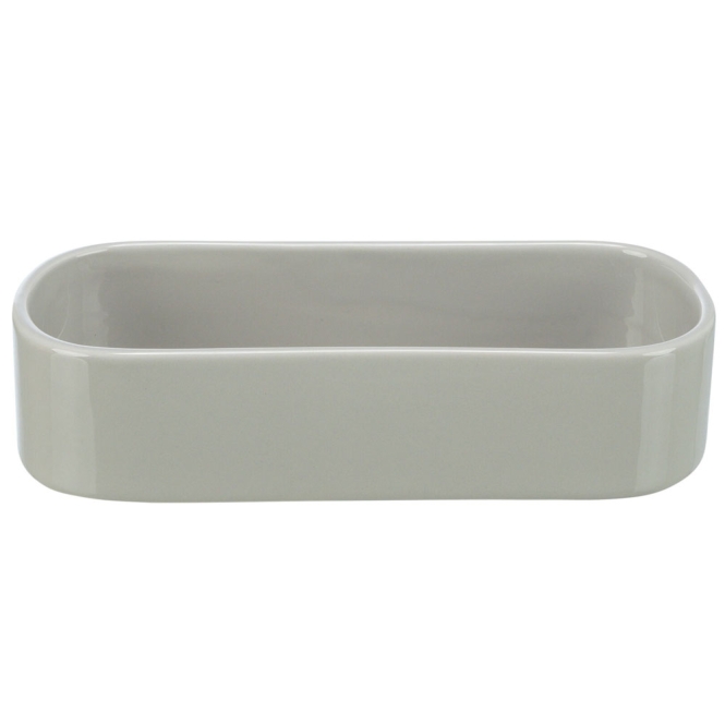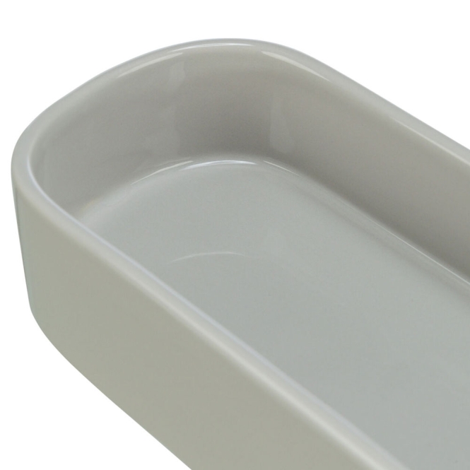 Het materiaal is keramiek, wat zorgt voor extra gewicht en stabiliteit vergeleken met lichte kunststof kommen. De langwerpige vorm maakt het makkelijker voor meerdere dieren om tegelijk te eten. Keramiek voelt stevig aan en blijft goed liggen tijdens normaal gebruik.