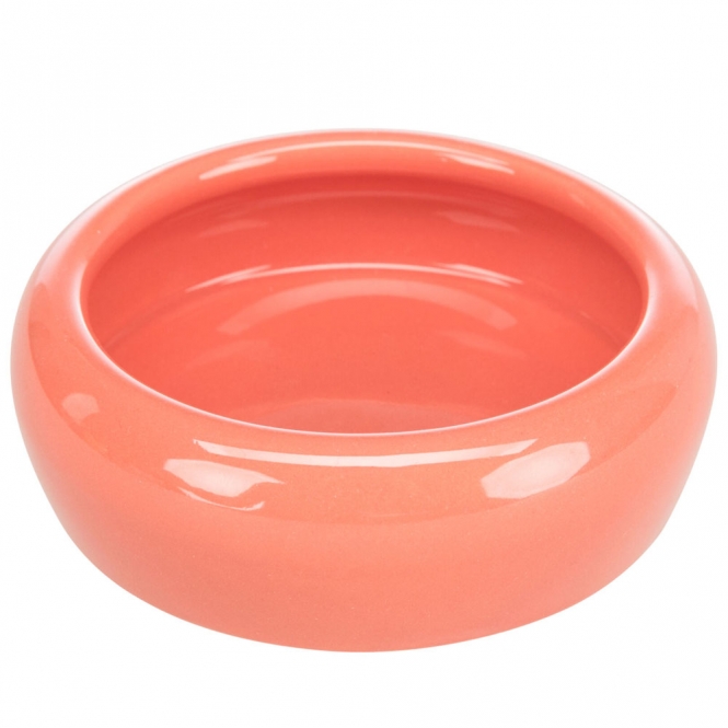 Dit is een schaaltje van keramiek dat bedoeld is voor klein dierengebruik. De vorm is eenvoudig en herkenbaar, zonder losse onderdelen. Het materiaal voelt stevig aan en staat stabiel in het hok. Het ontwerp is bedoeld om dagelijks gebruik te weerstaan.