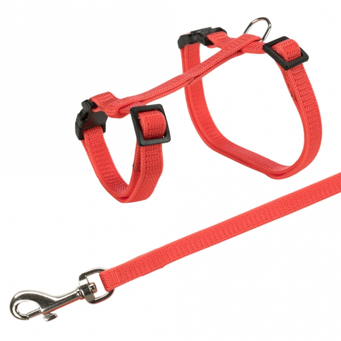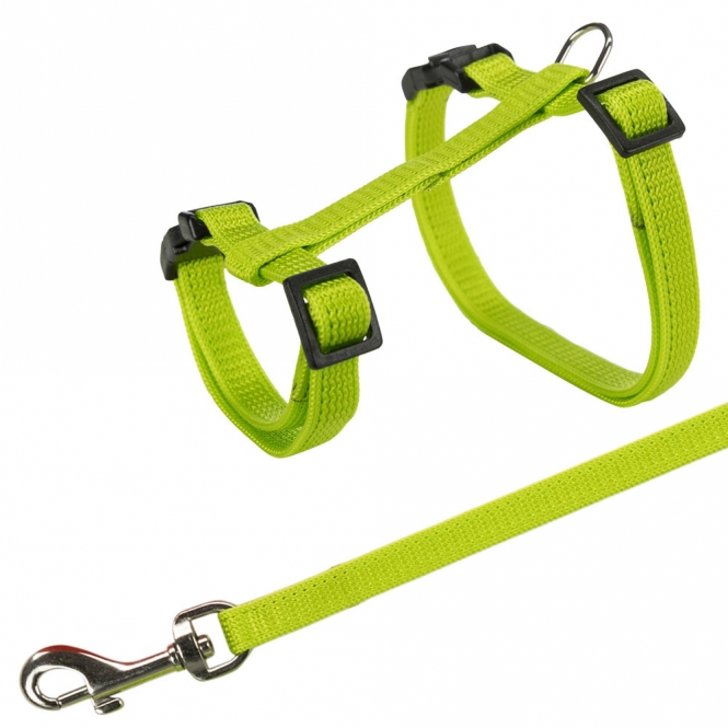 Een tuigje voor konijnen van het merk Trixie, gemaakt van stevig nylon en voorzien van een lijn met kliksluitingen. Het tuigje is traploos verstelbaar zodat je het passend kunt maken voor verschillende konijnen. De lijn is aan het tuigje bevestigd en heeft een praktische lengte voor begeleide wandelingetjes of toezicht buiten het hok. Er zijn verschillende kleuren mogelijk, maar je kunt niet zelf een kleur kiezen; welke kleur geleverd wordt hangt af van de voorraad.