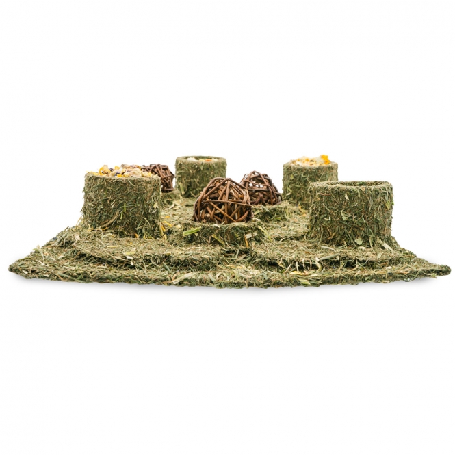 Je kunt het product in de kooi of ren leggen en kleine porties voer verspreiden in de openingen. Het zoeken kost tijd en geeft afwisseling in de dagelijkse routine. Op die manier blijft het geven van voer ook meer dan alleen een moment van eten.