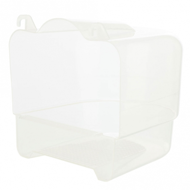 Dit is een eenvoudig badhuis gemaakt van kunststof met een halfronde vorm. Het is ontworpen om aan de buitenkant van de kooi deur te worden gehangen zodat vogels er gemakkelijk bij kunnen. De uitvoering is sober en functioneel, zonder extra ingewikkelde onderdelen. Kleuren wisselen per levering en een kleurkeuze is daarbij niet mogelijk.