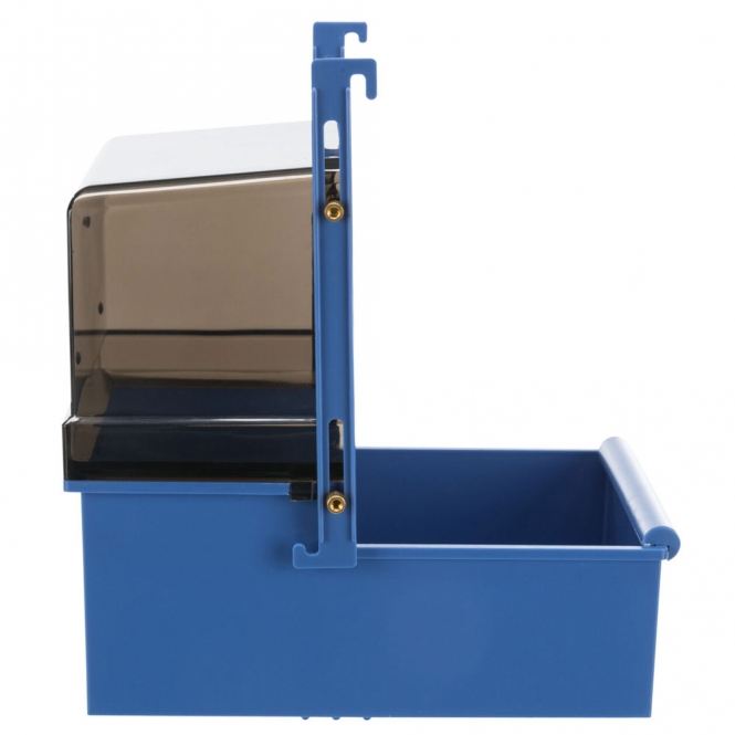 Voor de eigenaar biedt het badhuis het voordeel dat vullen en schoonmaken eenvoudig is door de bereikbare plaats bij de kooi deur. Je hoeft niet diep in de kooi te reiken en het badhuis is snel los te maken en weer terug te hangen. Het kunststof oppervlak is gemakkelijk af te vegen en te spoelen, wat dagelijkse verzorging vereenvoudigt. Dat helpt tijd te besparen bij het onderhoud van de kooiomgeving.