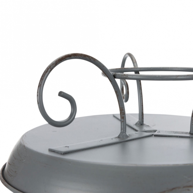Het product is gemaakt van metaal en heeft een poedercoating als afwerking. Die coating geeft een egale uitstraling en beschermt het oppervlak tegen direct contact met weersinvloeden. De grijze kleur is neutraal en valt niet op tussen planten en stenen. Het materiaal voelt stevig aan en is geschikt voor buitengebruik in een eenvoudige opstelling.