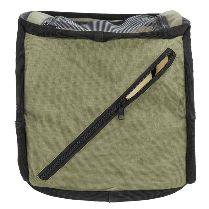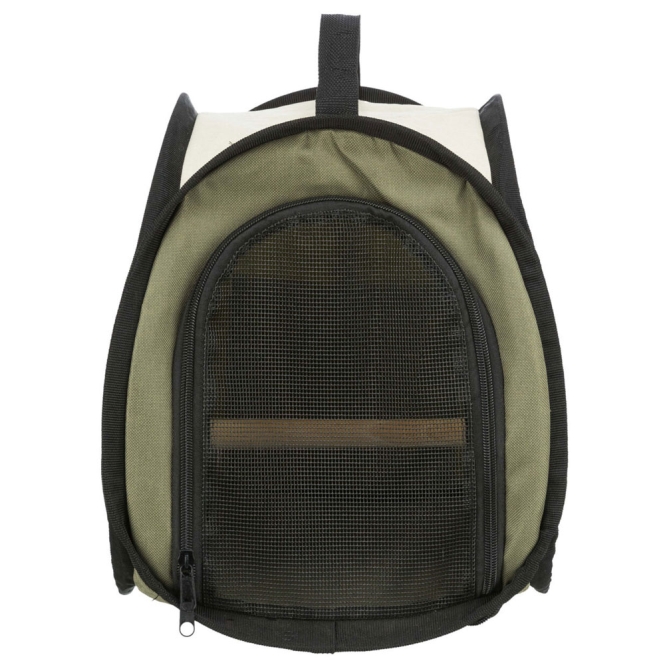 Deze transporttas van Trixie is bedoeld als eenvoudige en praktische manier om kleine parkieten mee te nemen. De tas heeft een uitneembare houten zitstok met schroefbevestiging en een uitneembare bodemplaat, zodat de binnenkant aangepast kan worden aan het gebruik. Het materiaal is polyester en de kleuren zijn discreet beige met olijfgroen.