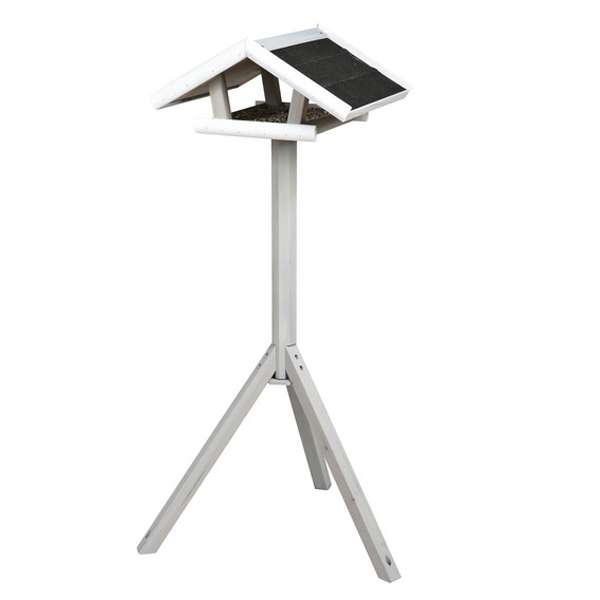 Dit is een Trixie voederhuis met standaard in een rustige rood-witte kleurstelling. Het huisje is uitgevoerd in gelazuurd dennenhout en staat op een staander, zodat het iets hoger boven de grond hangt. Het ontwerp heeft een ruim dakoverstek en een ruime landingsplaats voor vogels.